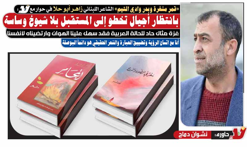 «قمر مشغرة وبدر وادي التيم» الشاعر اللبناني زاهـر أبو حلا في حوار مع «لا»:بانتظار أجيال تخطو إلى المستقبل بلا شيوخ وساسة