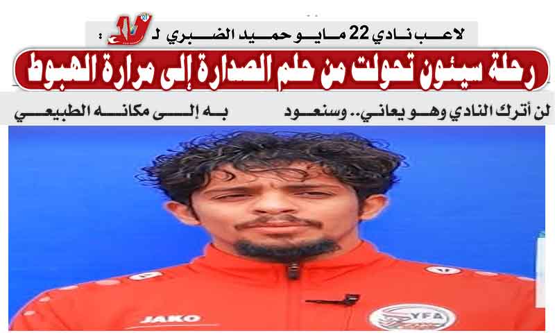 لاعـب نادي 22 مايـو حمـيد الضـبري لـ«لا» :رحلة سيئون تحولت من حلم الصدارة إلى مرارة الهبوط