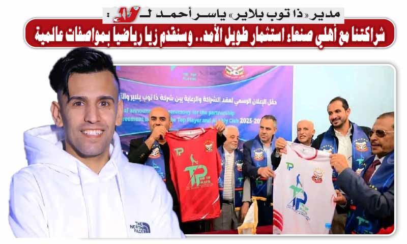 مدير «ذا توب بلاير» ياسر أحمد لـ«لا»:شراكتنا مع أهلي صنعاء استثمار طويل الأمد.. وسنقدم زياً رياضياً بمواصفات عالمية