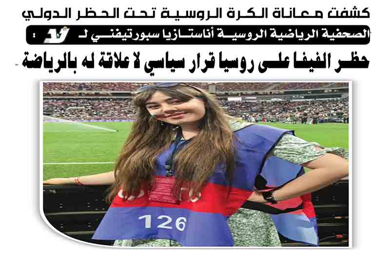 الصحفية الرياضية الروسية أناستازيا سبورتيفني لـ"لا":حظر الفيفا على روسيا قرار سياسي لا علاقة له بالرياضة