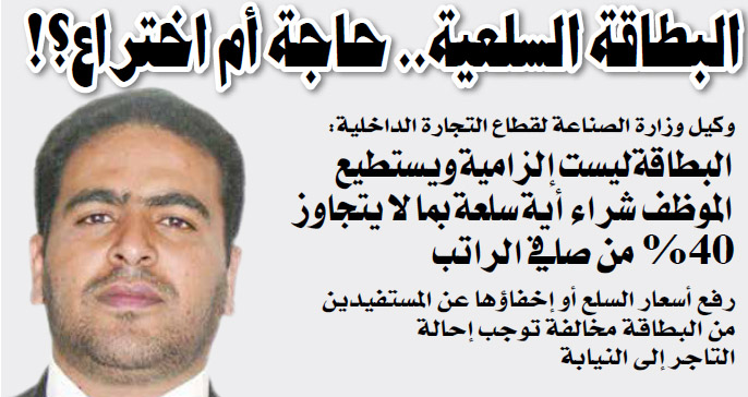 وكيل وزارة الصناعة لقطاع التجارة الداخلية:البطاقة ليست إلزامية ويستطيع الموظف شراء أية سلعة بما لا يتجاوز %40 من صافي الراتب